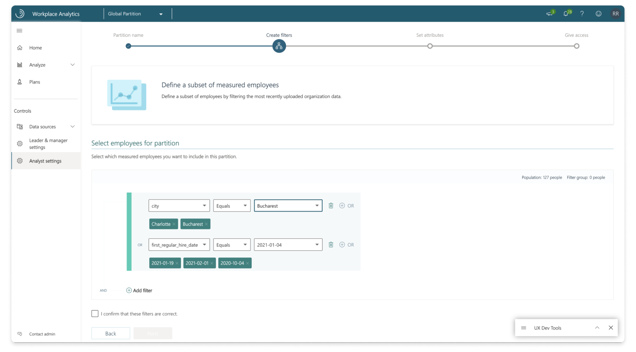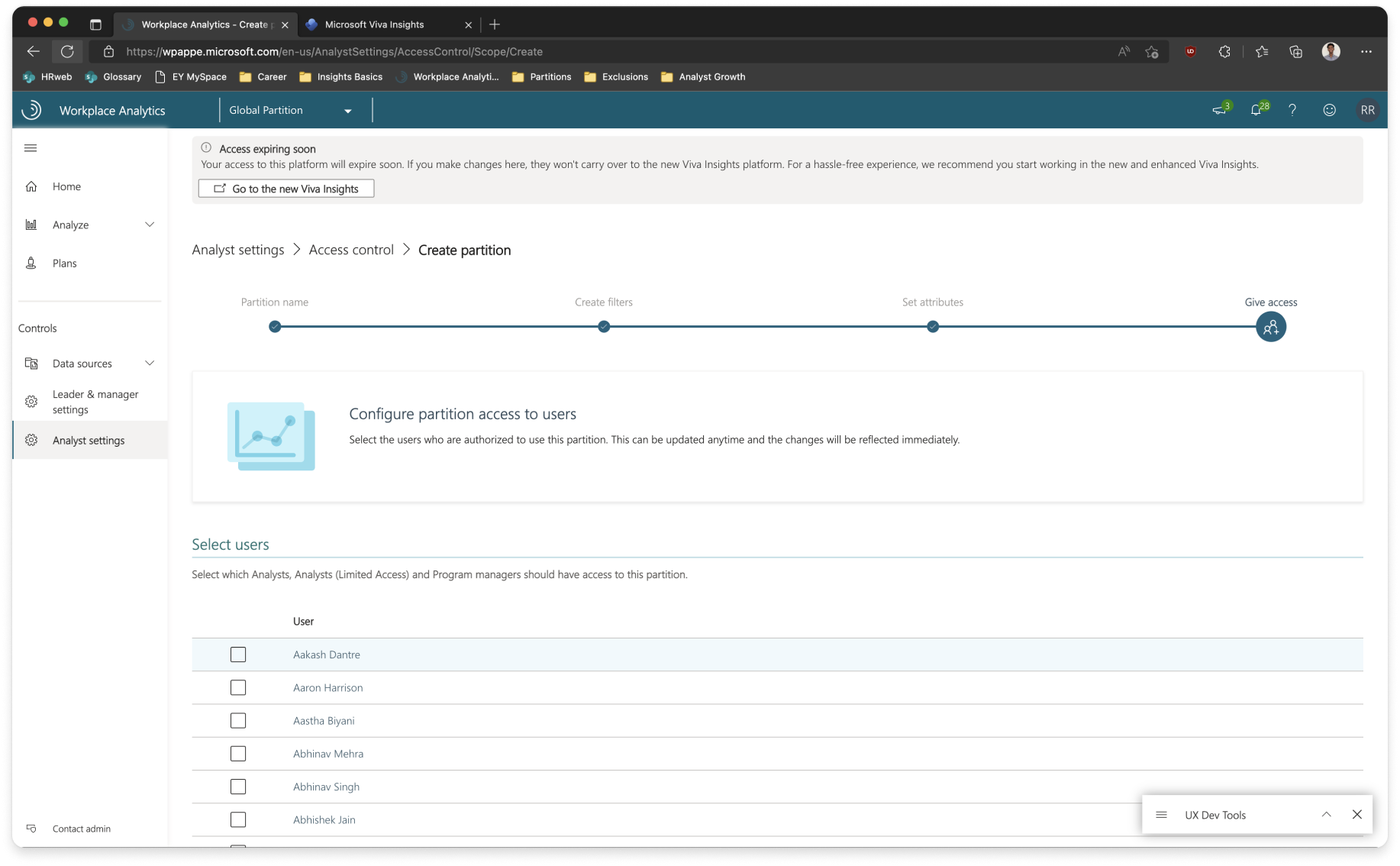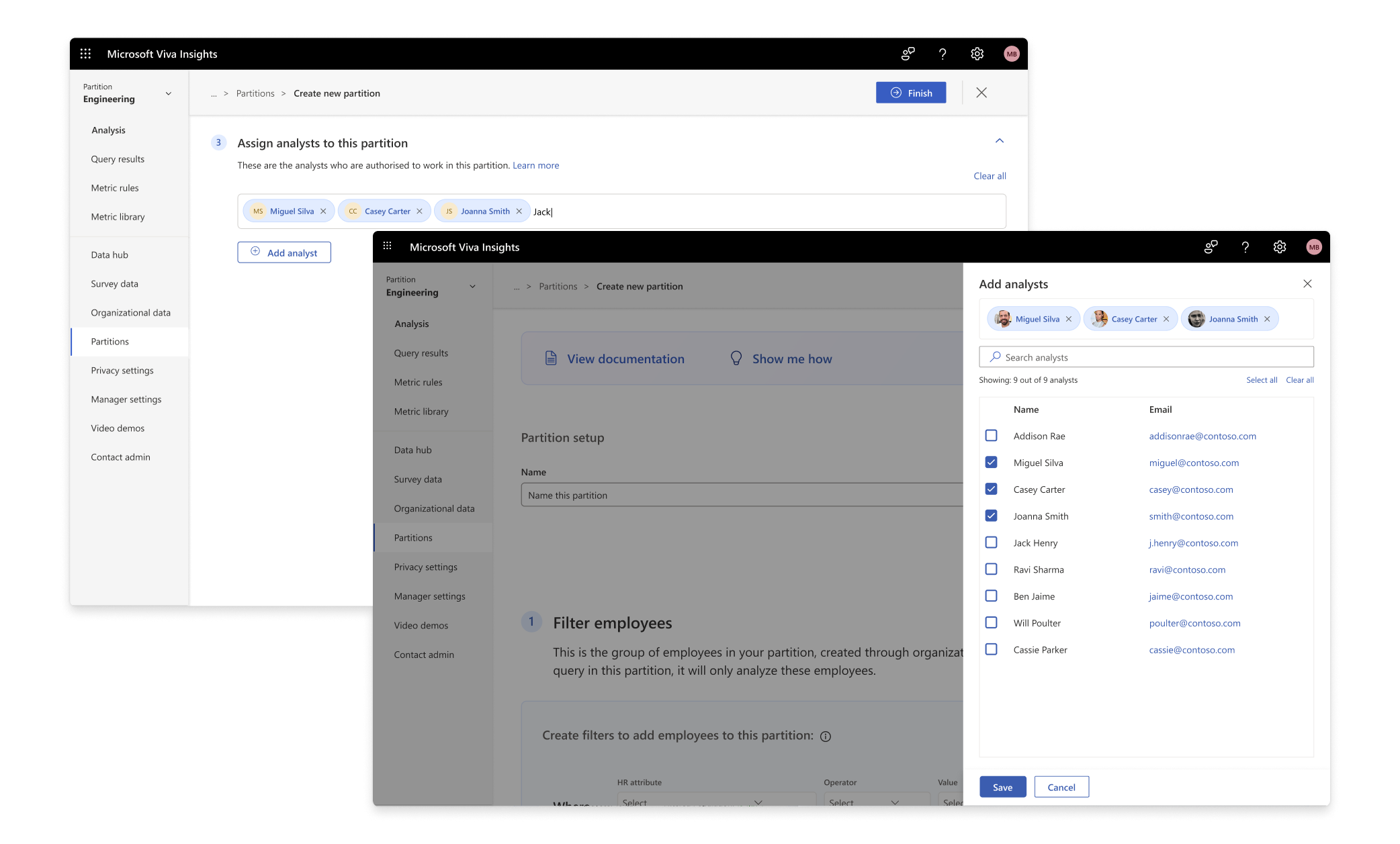 The final part of our puzzle was figuring out how to let admins enable Partitions for their tenant. The tricky part over here is that, once Partitions is enabled, analysts will have to be manually assigned to at least one partition to work on Viva Insights and conduct analysis. This is a shift in paradigm for the admins as before Partitions, any analyst who was assigned Viva Insights in the Microsoft Admin Center, will automatically get access to all data.