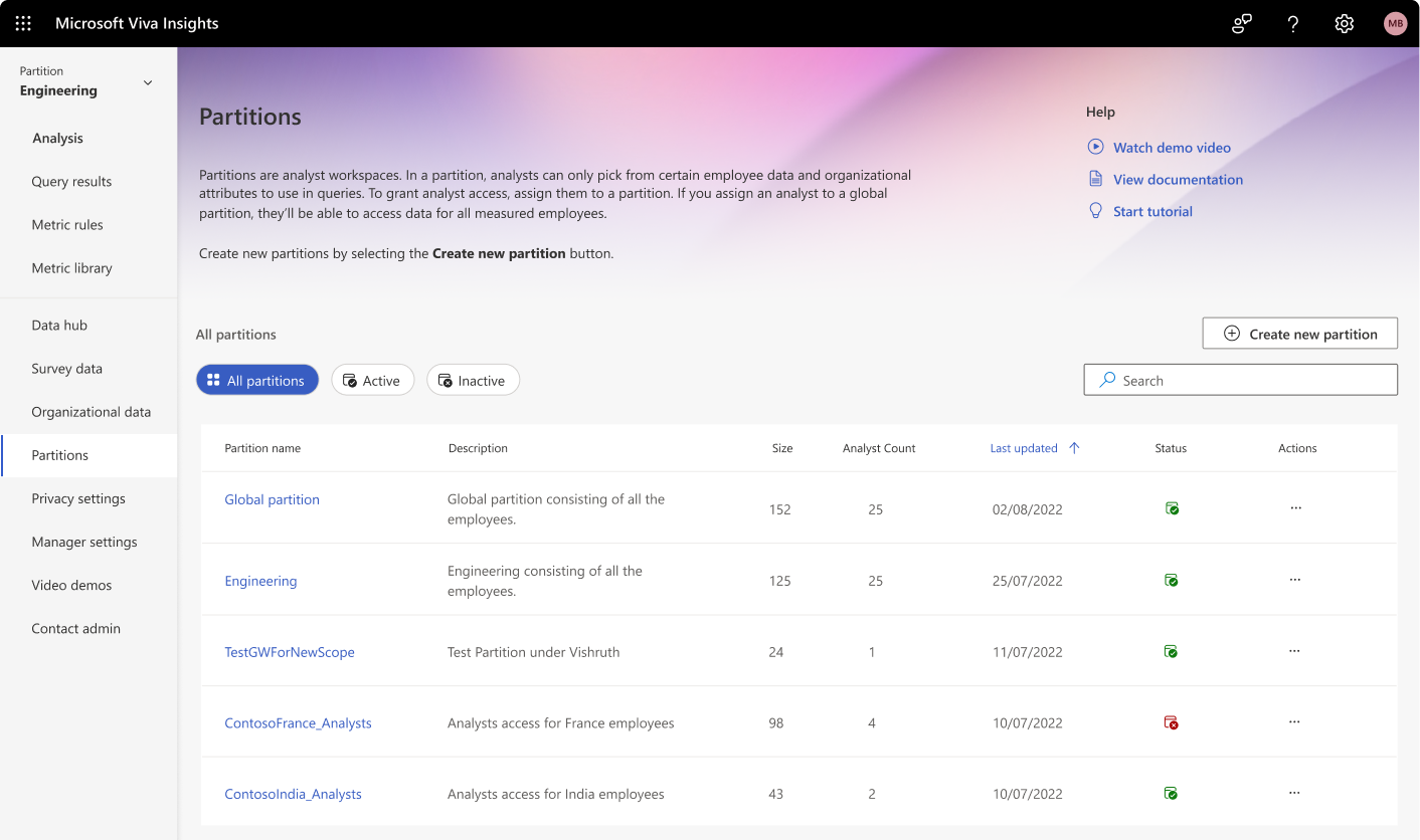 When Microsoft migrated from Workplace Analytics (WPA) to Viva Insights, one of the most important features that customers needed in the new platform was Partitions.