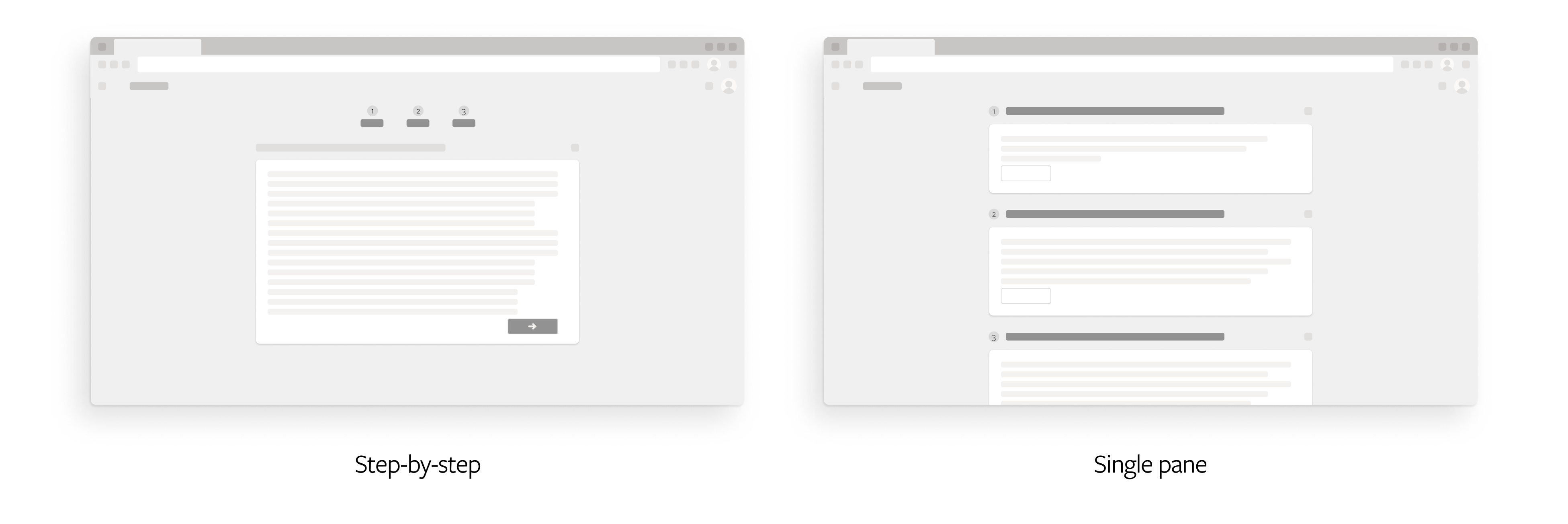One of the key decisions which we had to make was to go forward with the current step-by-step wizard or design a new single pane wizard.