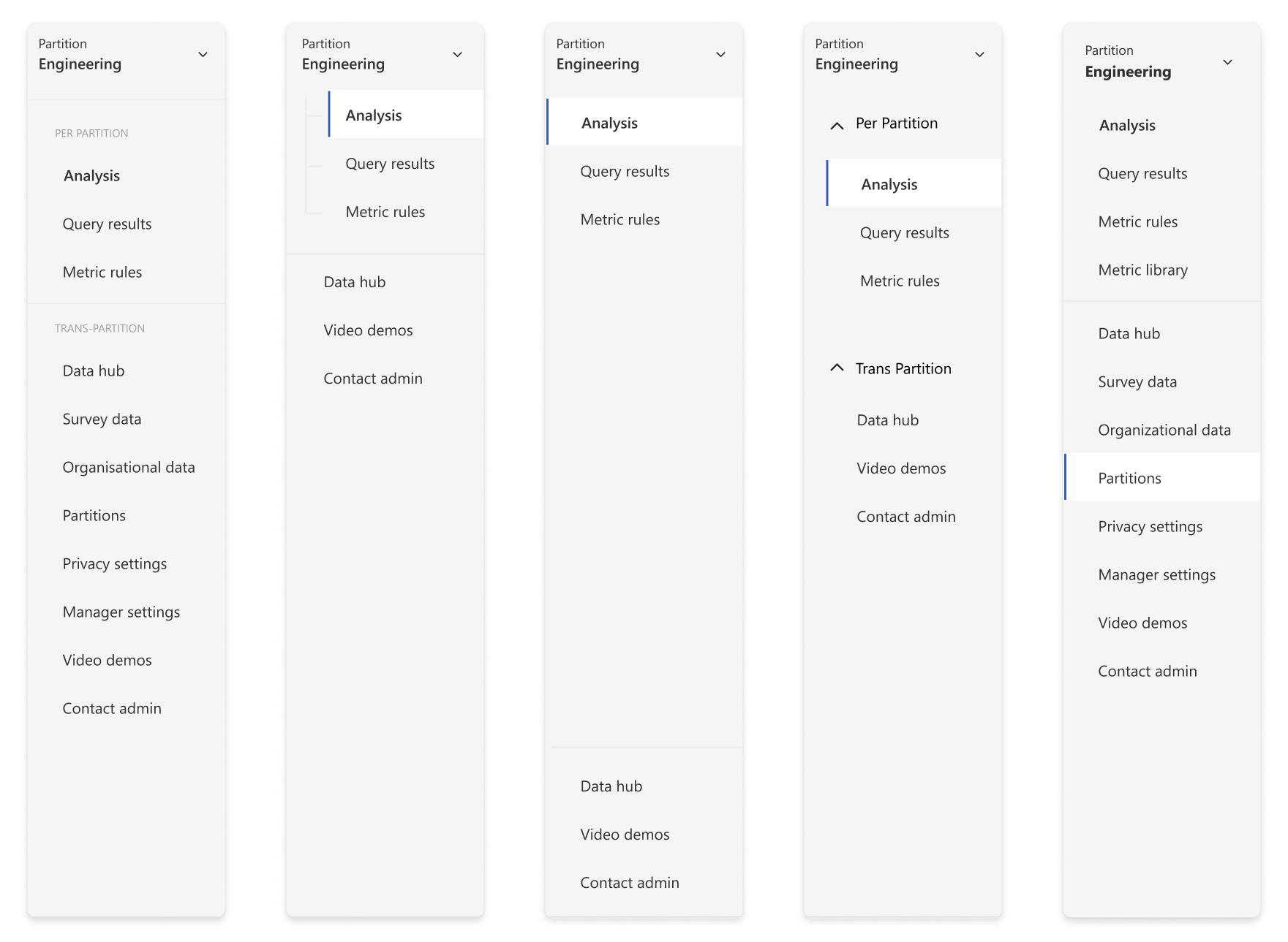 The problem with this approach was since Partitions is an opt-in feature and is a highly data-sensitive one at it, the team did not prefer the idea of keeping the Partitions tab easily accessible.